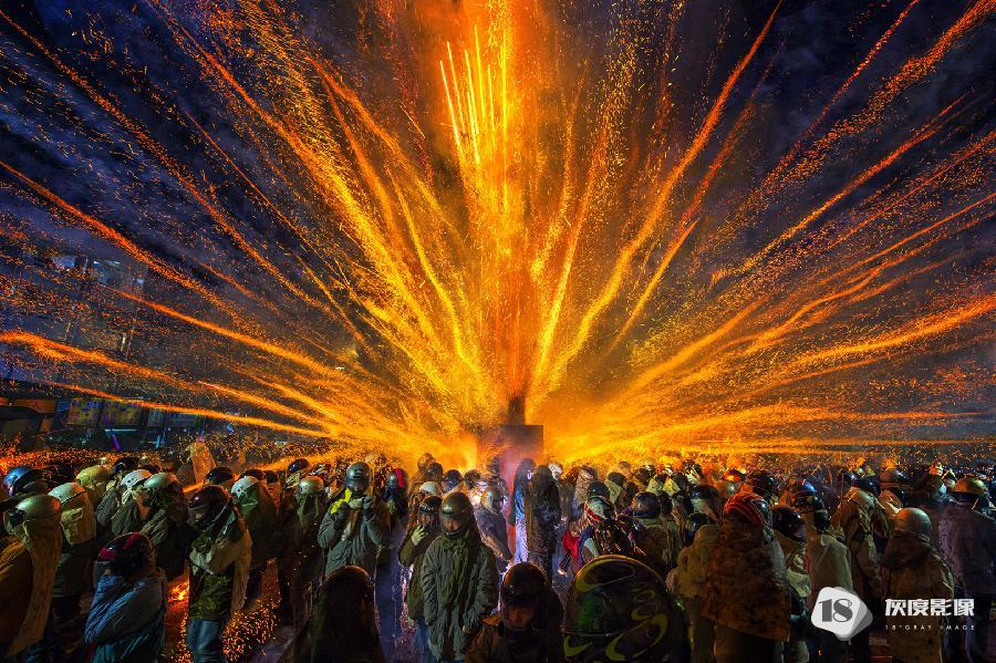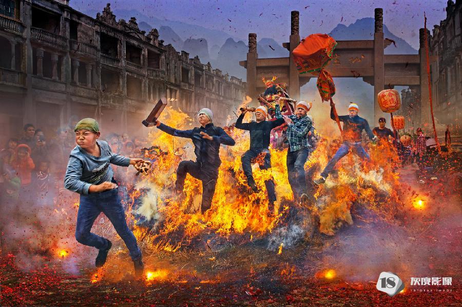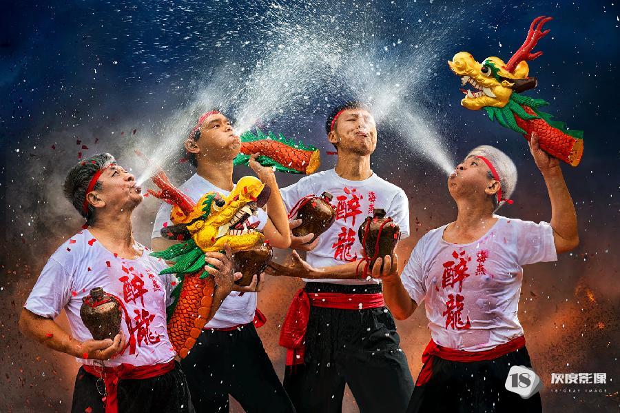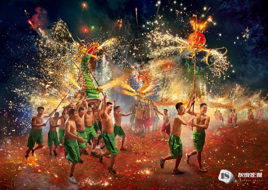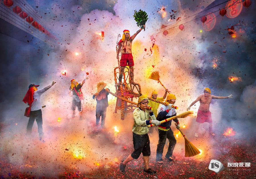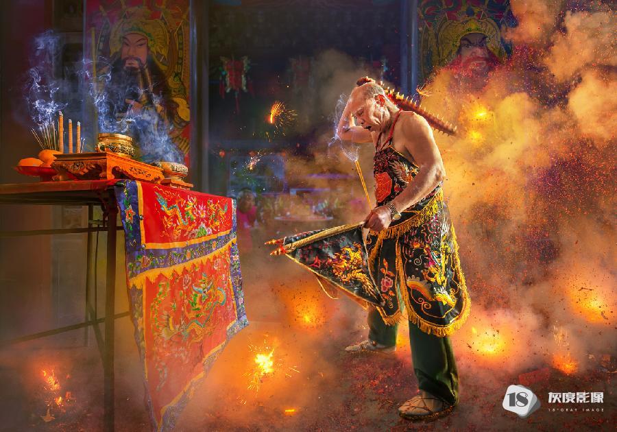 这组图片一一记录了这些盛况,孩童手执天灯许愿,舞龙舞狮,火炸寒单爷等,好不热闹。在连串鞭炮的“炮洗”下,表演者在火光中穿梭,观者看得热血沸腾,他们认为炸得越痛,来年会越有福份。